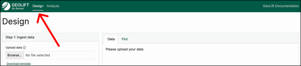 Once your data is compiled, it’s time to open GeoLift by Recast and navigate to the Design tab (pictured above).